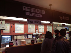 There are a lot a lot a LOT of tempting options to consider there, from amazing flavors to fabulous sundae concoctions, but ABF kept trying to keep me focused on the plain old scoop of black raspberry. The line was out the door and moving quickly, so I didn't ask for a sample like I normally would. I ordered the sugar cone of Black Raspberry and kept moving.